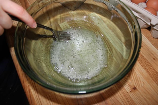 Bake long and slow, until the egg white mixture is dry. Remove from oven and allow to cool to the touch.