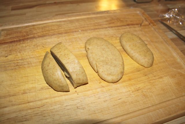 Cut the dough into 4 roughly equal pieces. Squish the pieces down until they are about a centimeter thick.