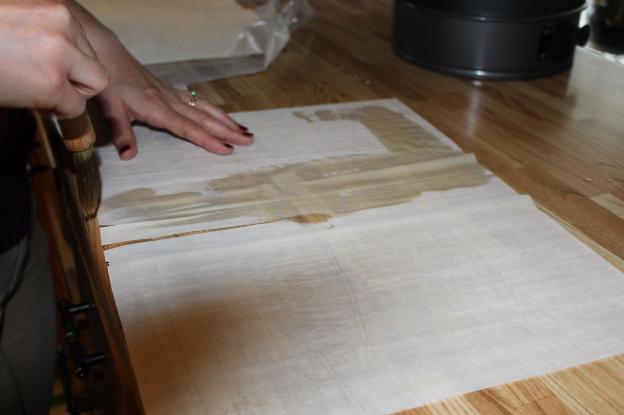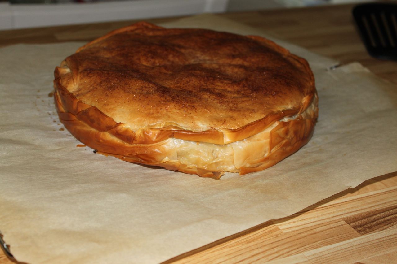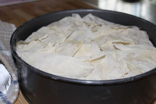 Top with a nice proper blanket of phyllo sheets and some cinnamon sugar.
