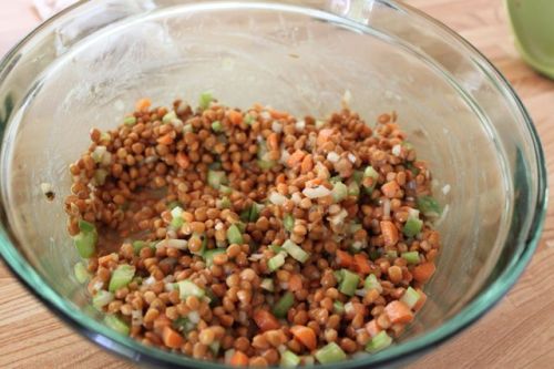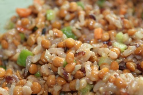 I then mixed my rinsed can of brown lentils and the rice I cooked with everything else.