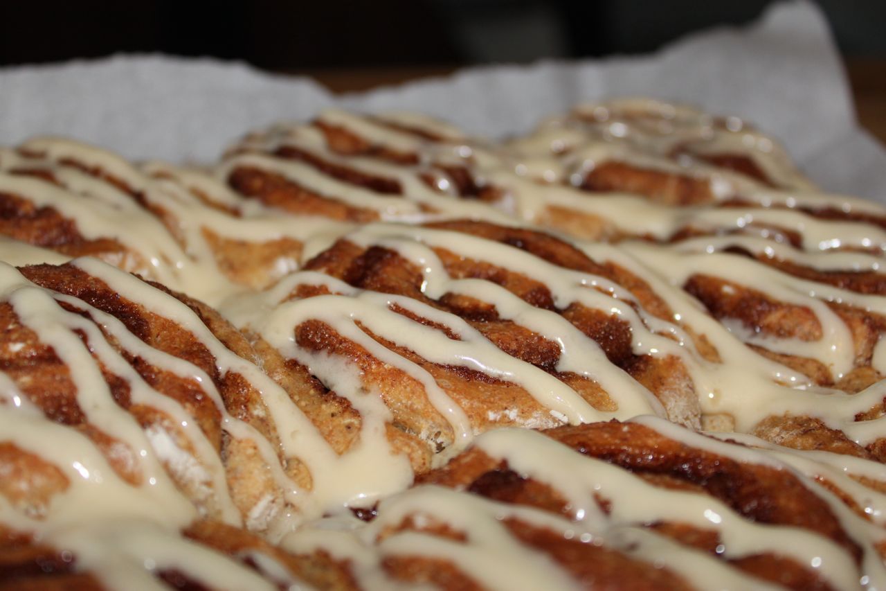 Yes, they are glazed with a sweet cream cheese glaze. A cinnamon roll goes from great to ‘take the pan to the car to eat them all yourself’ fabulous with a cream cheese glaze.