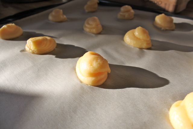 Drop the dough by tablespoonful (for round puffs) on a baking sheet lined with parchment, leaving about 2 inches between the mounds to allow for room to puff.