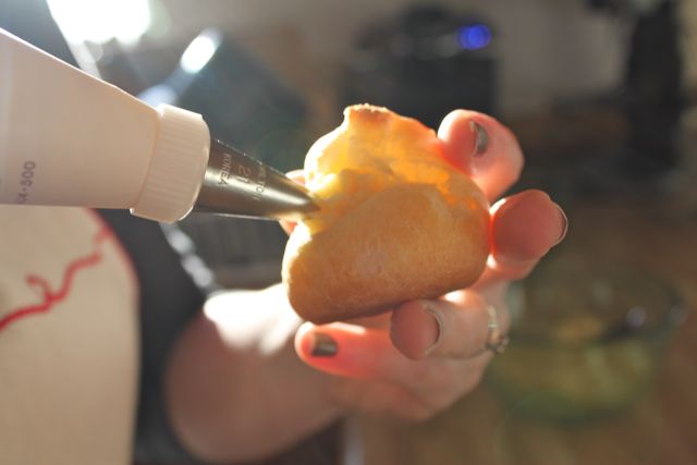 On this particular day, I chose to fill the sweet dough I made with 2 fillings: a vanilla pastry cream (later turning them into profiteroles with a little help from some chocolate ganache), and a smoked salmon and cream cheese mixture. Both were fabulous.