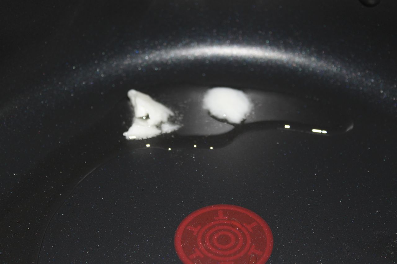 Melt the cocount oil in a large pan over medium heat.