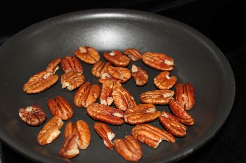 Roast the nuts over a low heat in a dry pan. This should only take a few minutes. Remember to give them a shake every couple of minutes or so.