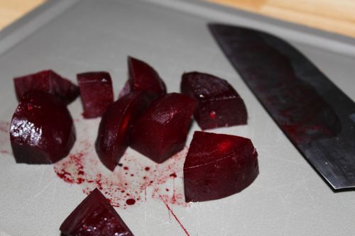 Chop the beets into nice, bite-sized pieces. Or however you’d like to chop them – this is certainly not a picky person salad.