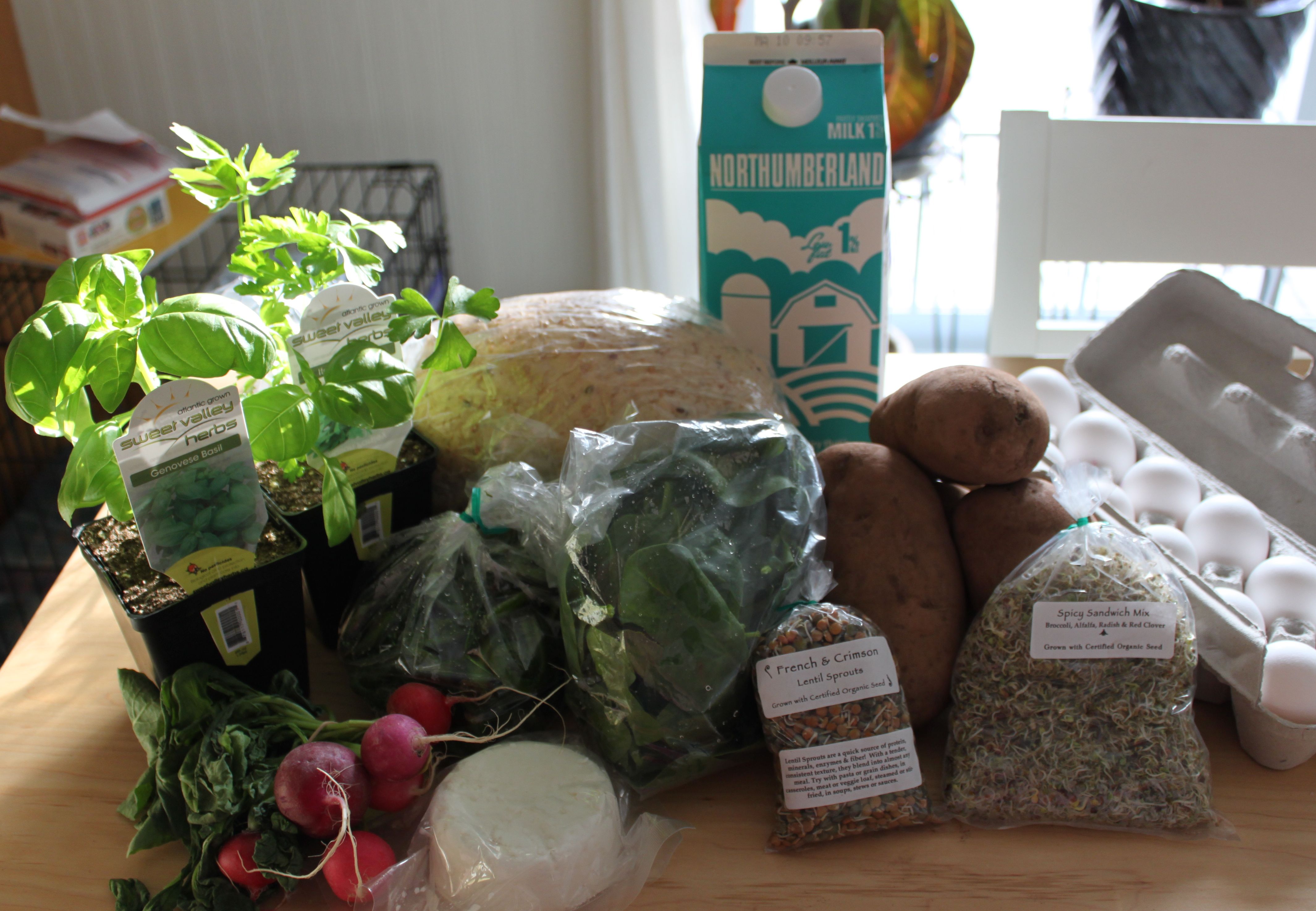All of the boxes have some things in common, but you also get to pick a couple of things when you get there. This week we got our choice of herbs and a cheese. We chose parsley for our herb and a goat feta for our cheese.