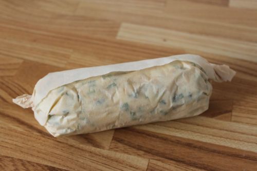 I rolled the butter into a log with parchment paper so we can keep it in the refrigerator and use it when we need it.